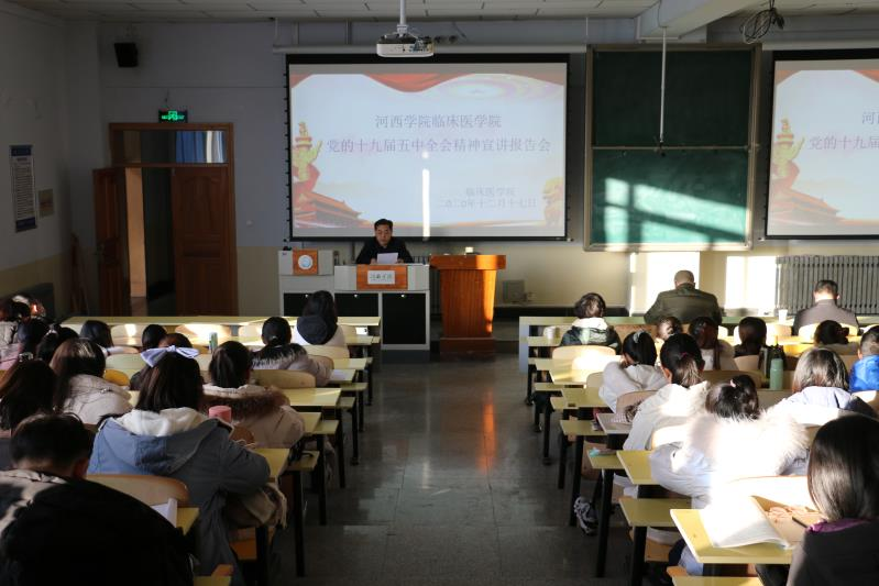 12月17日上午,党委常委、附属BETWAY必威党委书记王德在医公司阶梯教室为BETWAY必威师生作党的十九届五中全会精神宣讲报告。BETWAY必威全体教职工及员工200多人参加了报告会。