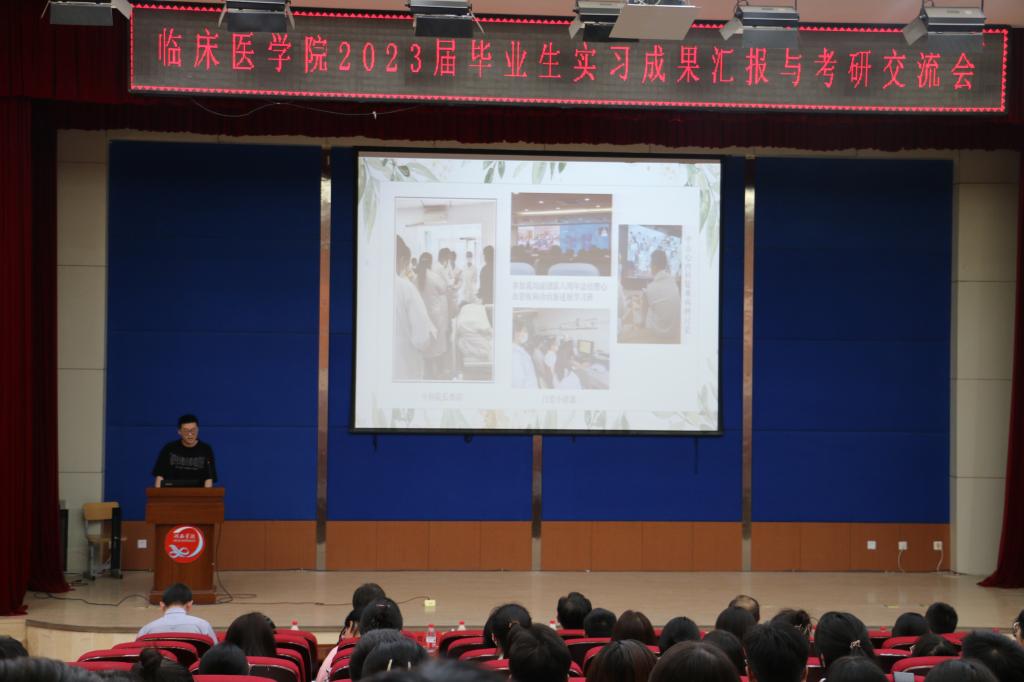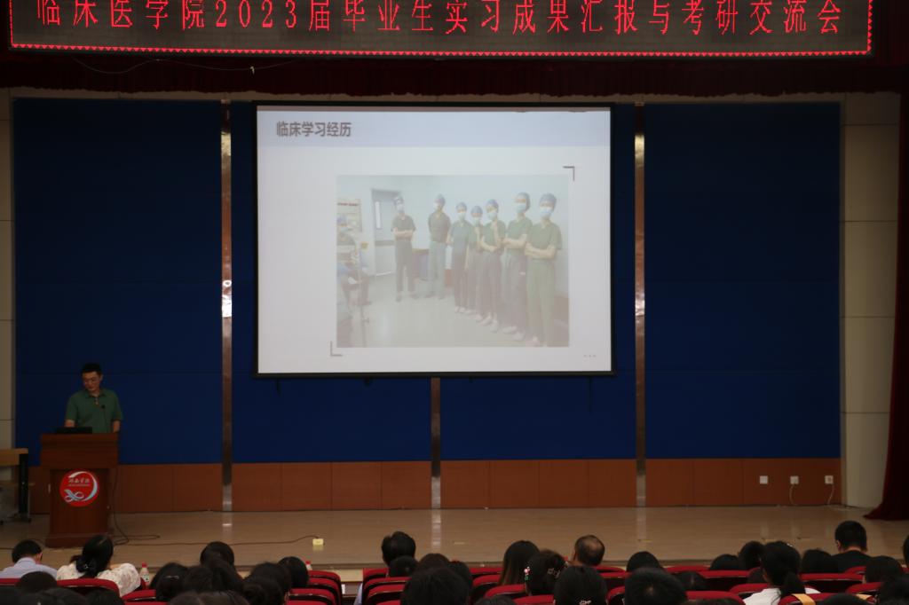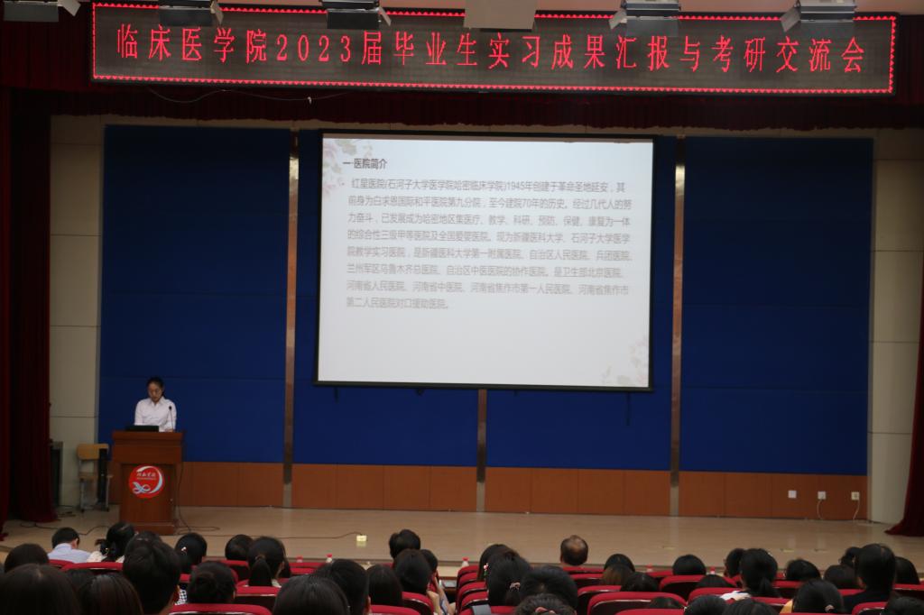 毕业生实习成果会上,上海徐汇医院、哈密红星医院及深圳石岩人民医院实习组长作为代表进行了成果汇报。三位同学就医院情况、实习操作情况、生活起居、人文关怀等方面向大家进行了介绍。并讲解了实习期间工作学习的收获。