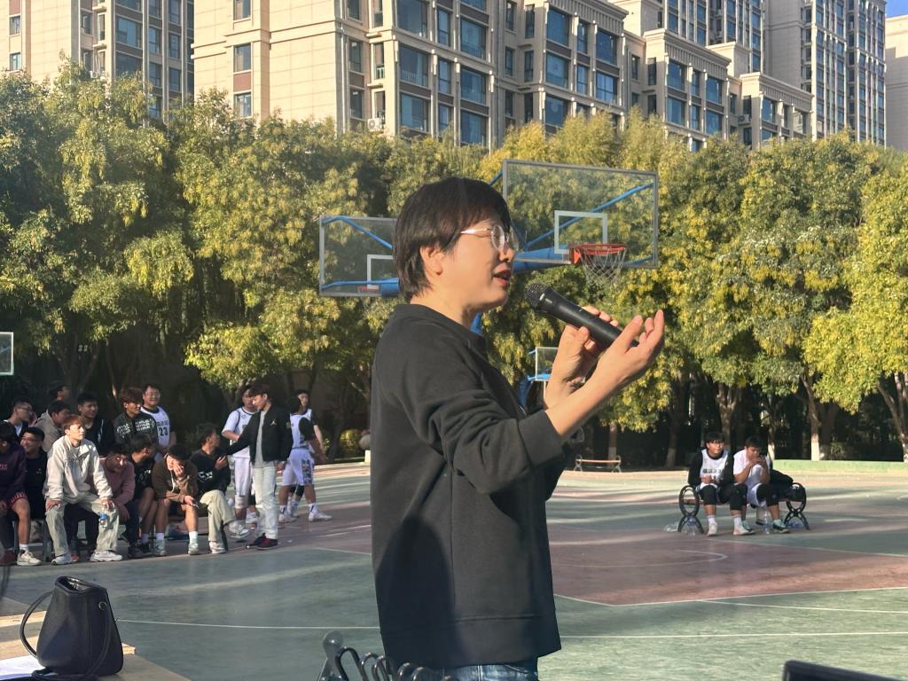 在闭幕式现场,田莉梅经理发表了讲话,她对此次“迎新杯”篮球比赛的成功举办表示祝贺,同时也鼓励更多的同学加入体育锻炼,强身健体。