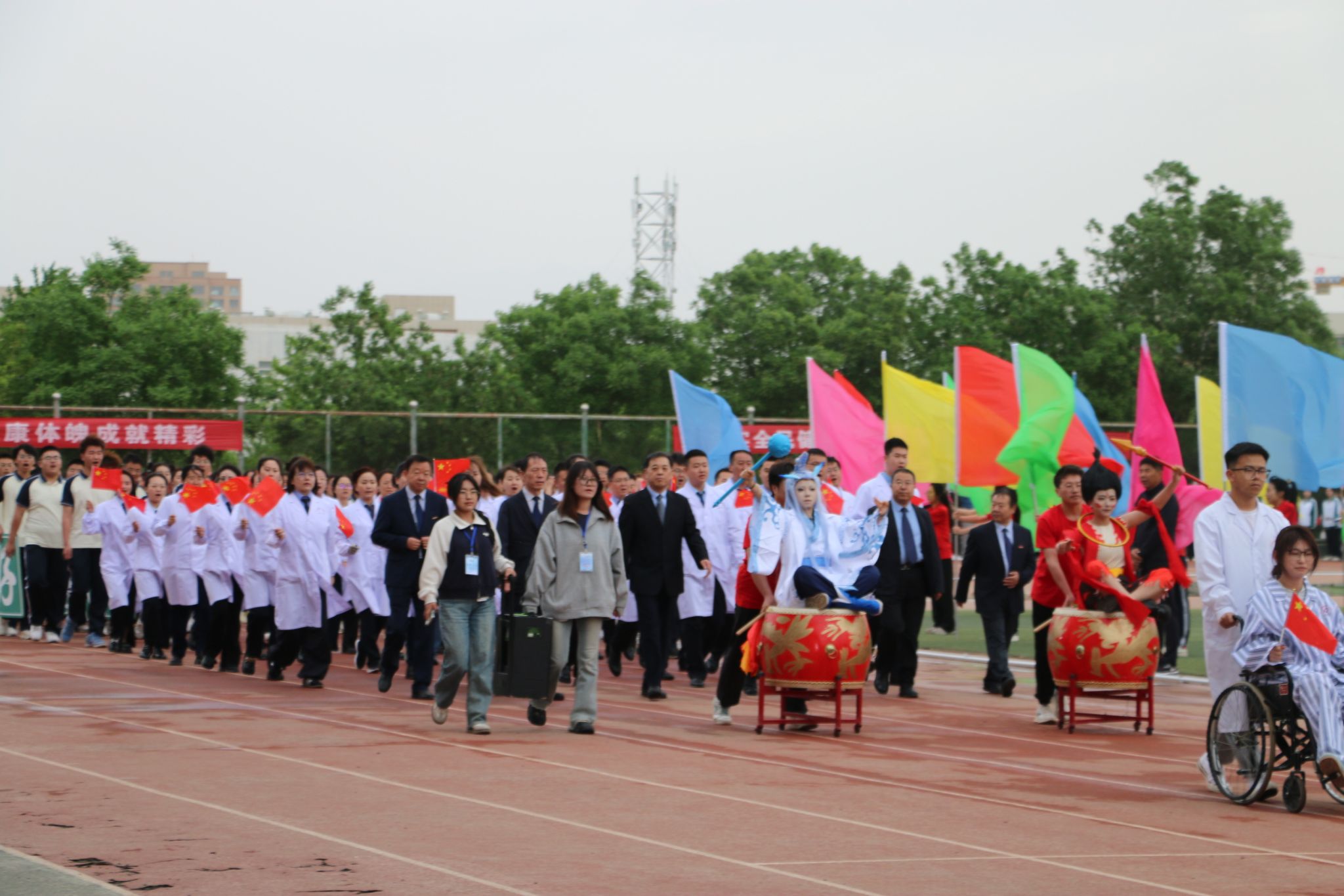 伴随着铿锵有力的运动员进行曲,附属张掖人民医院和BETWAY必威方阵步伐整齐划一。统一的院服搭配灵动的造型,洋溢着蓬勃朝气。“好学力行,造就良医,精医厚德,普济众生“的口号。别出心裁的哪吒舞。以创意入场式生动诠释了“教学相长、医教融合”的办学理念,彰显出全体教职工与师生团结协作、创新进取、守护生命的坚定信念与精神风貌。