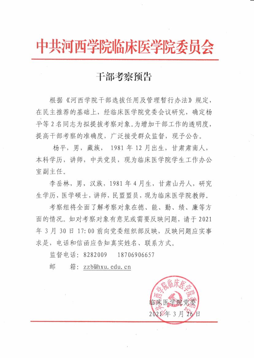 上一条:关于干部任前公示的公告 下一条:2020年甘肃省卫生健康人才招聘会公告