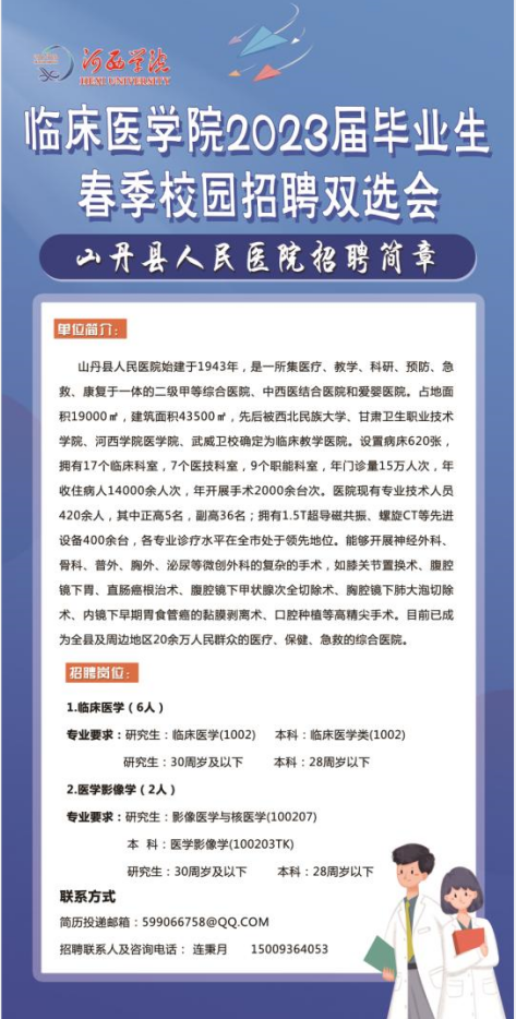 上一条:天水市四零七医院招聘简章 下一条:山丹县妇幼保健院招聘简章